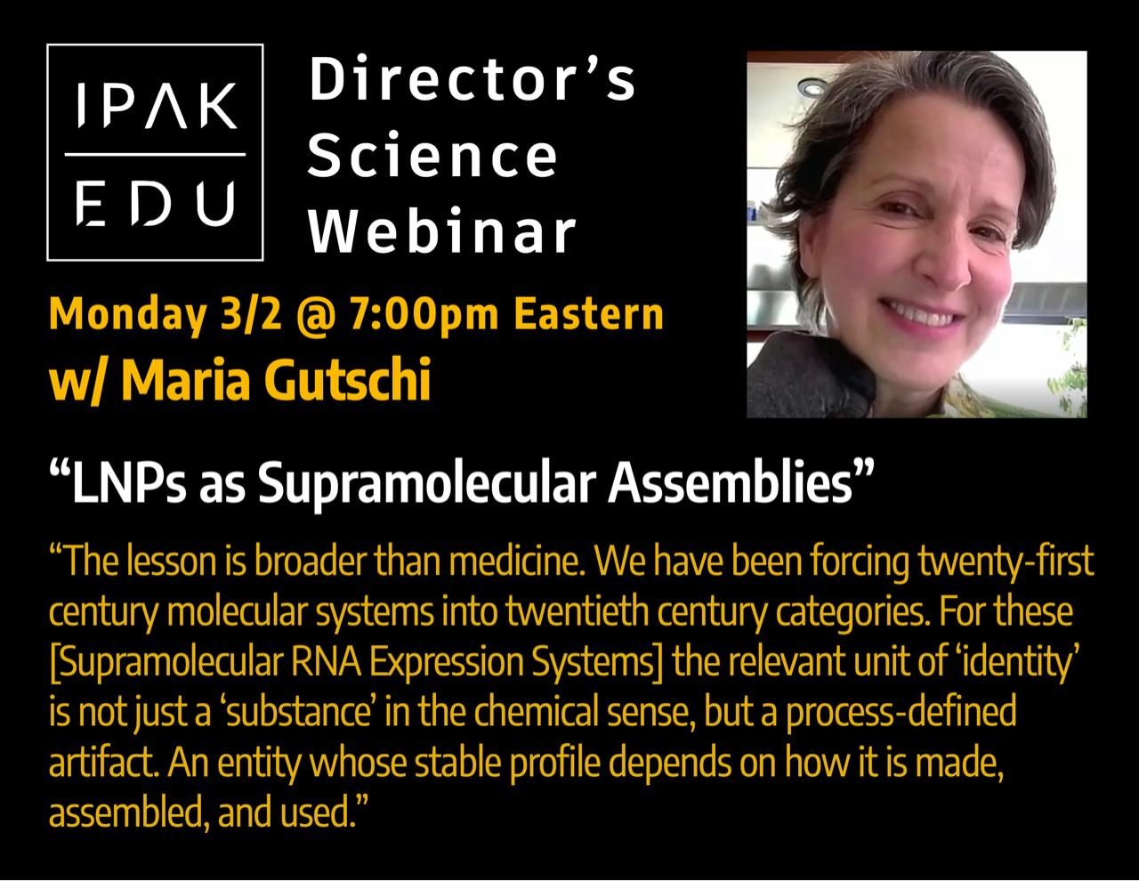 Weekly Monday Evening Science Webinars 7pm ET on a rich variety of topics, live w/Q&A